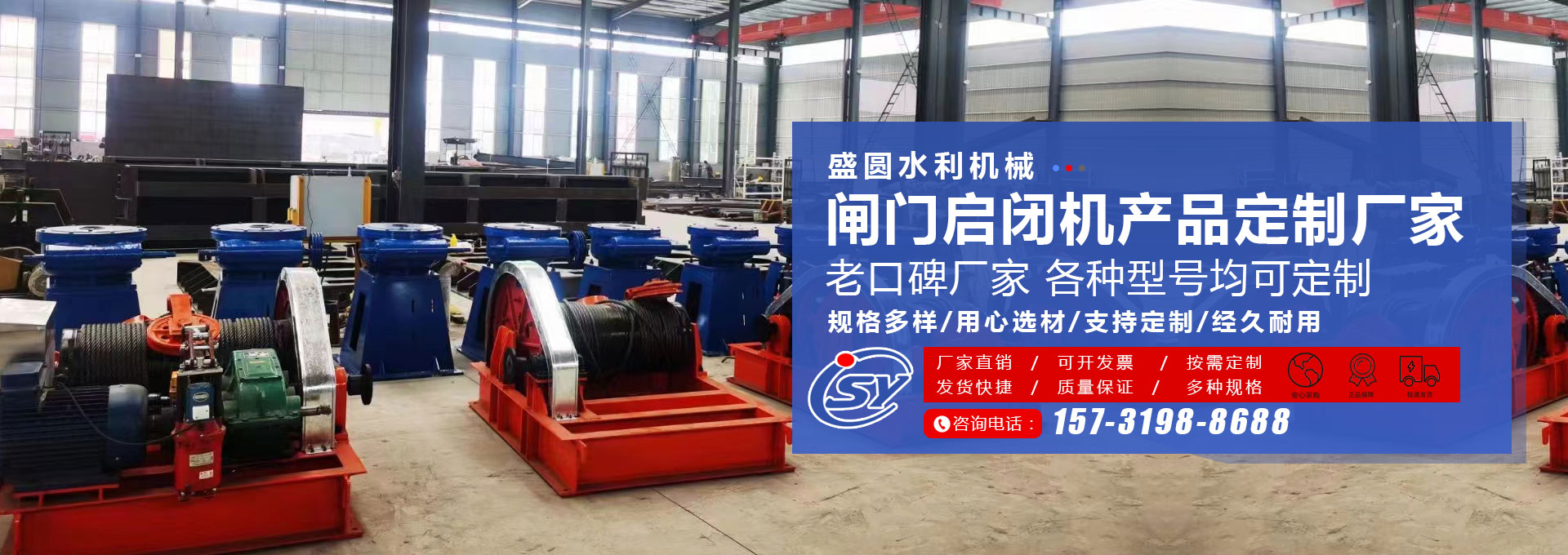 衡水盛圆水利机械有限公司是一家专业设计、制造、批量生产及指导安装水工机械的综合性企业。 我公司集设计、开发、生产、施工为一体,专业生产钢制闸门、铸铁闸门、不锈钢闸门,QL型、QLC型、QLP型螺杆启闭机,QPQ、QPK、QPH、QPT型卷扬启闭机启闭机,玻璃钢拍门、钢拍门、不锈钢拍门、拦污栅、回转式清污机、橡胶止水带等水工产品。 多年来,公司依靠优良的产品质量、合理的产品价格、热情周到的售后服务,产品被广泛用于水利工程项目中,并赢得了广大用户的信赖与赞誉。 主导产品: 1、螺杆式启闭···